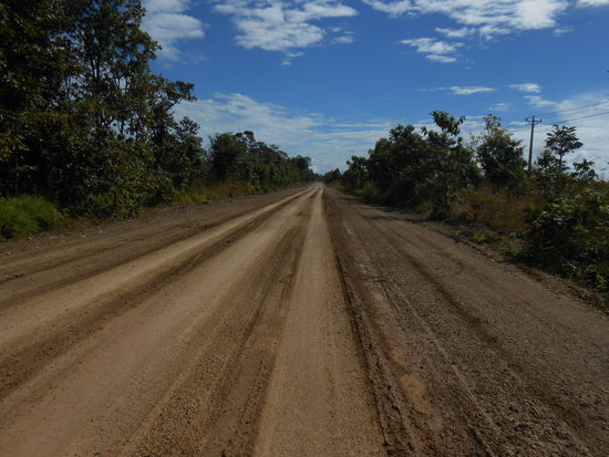 Auf dem oberen Bild sieht man die Nationalstraße 7 in nach Stung Treng, unmittelbar hinter der Grenze....