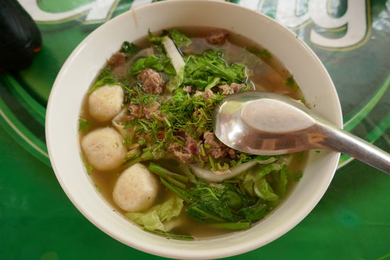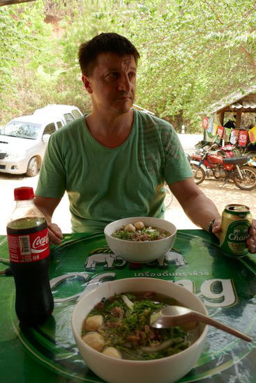 Zum Mittag, wie meistens wenn wir unterwegs sind, eine Suppe am Straßenrad geholt, kostet 30Baht. Auch hier konnten wir nur mit Händen und Füßen kommunizieren, aber es klappt, man zeigt auf das, was in die Suppe darf ... bis auf den Tofu fanden wir sie sehr lecker.
