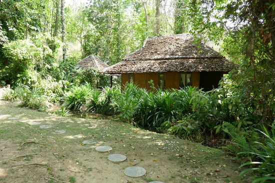 Tolles Resort, 7 km vor der Stadt, mitten im Dschungel, super in die Landschaft integriert.