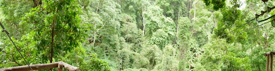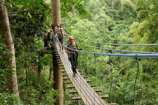Die 7 km lange Tour führt über 18 Ziplines durch das 5,5 km lange System von Stahlseilen, über schwingende Hängebrücken und Plattformen in alten Baumriesen zu insgesamt 33 Stationen, von denen die längste 800m über ein Tal führt. Ein Teil des Gewinns geht an das Gibbon Rehabilitationszentrum.