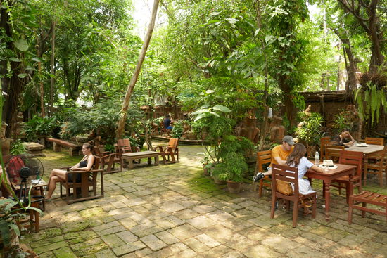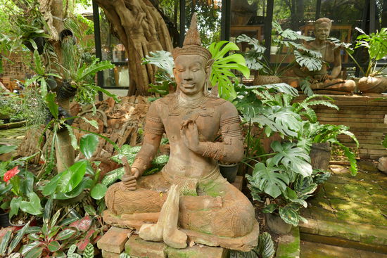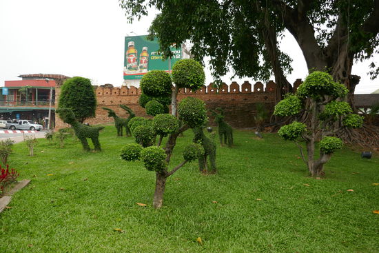 .... und vorbei an kunstvoll geschnittenen Bäumen, machen wir uns, bei 36 Grad morgens, auf den Weg zu den Tempeln in der Altstadt.