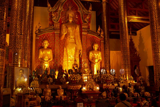 1545 ist bei einem Erdbeben das halbe Dach eingestürzt. Man darf nur links rum gehen um, dass bringt Glück. Wer rechts herum geht, wird vom Glück verlassen, hat uns ein Thailänder erzählt.