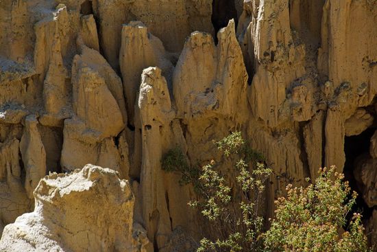 Valle de la Luna (das Mondtal) besteht aus unglaublich vielen Felsen, Felsspalten, Hügeln und anderen Formationen. Diese Formationen entstanden durch Erosion und Klimaschwankungen im Verlauf von Millionen von Jahren. Niederschläge tragen den Lehmboden im Laufe der Zeit und führen zu diesen bizarren Felsen. Es wächst kaum was drauf, hier und da ist ein Kaktus zu sehen. Doch ansonsten ist alles in dieser einen lehmigen Farbe. Sie erinnern ein wenig an Termitenneste.