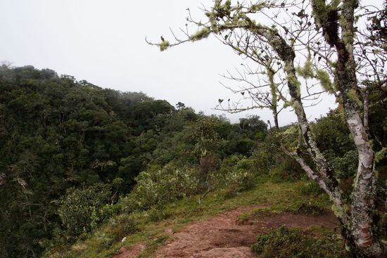 Die Wanderung durch den Nebelwald ist sehr schön, denn wir gehen nur schmale, leicht ausgetretende Wege, also quasi wie durch den unberührten Primärwand. Mal geht Erwin vor, mal ich. Wenn ich vorgehe, ist es ein tolles Gefühl, fast wie ganz alleine in diesem Wald zu sein. Wir besuchen zwei Aussichtspunkte, von denen aus wir die schöne Landschaft sehen. Später suchen wir in der trockenen Region, die völlig anders ist, nach Vögeln. Die witzige Art des Guides macht die Tour zu einem richtig gelungenen Ausflug. Wir reden über die Unterschiede zwischen den Deutschen und den Bolivianern und was sich in Bolivien im Laufe der Zeit änderte. Erwin erzählt mir, dass der Einfluss der Touristen die Einstellung der Bolivianer zum Essen etwas ändert. Er zum Beispiel isst nun mehr Gemüse und weniger Brot, doch ohne Fleisch kann er sich das Leben nicht vorstellen. Der Ausflug ist auch ein guter Spanischunterricht, wenn wir nicht gerade stillschweigend und möglichst still durch den Wald gehen, um die eh weinigen Vögel nicht zu verschrecken . Nach der Tour gehen wir in Samaipata an der Plaza noch was essen und gegen 16:30 Uhr bin ich erledigt, müde aber happy im Hostal.