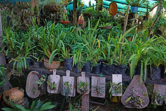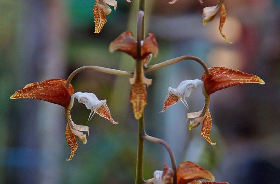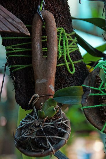 Bevor ich wieder zum Hostal zurück kehre, schaue ich bei einem Orchideen Garten vorbei. Alejandro aus Santa Cruz hat mir diesen empfohlen und erinnert mich noch mal daran als ich erneut bei ihm sein Zimmer anfrage für die Nächte nach Samaipata. Es handelt sich um den Garten einer Frau in Samaipata, Marcy, die Biologin ist und Orchideen liebt. Sie hat an die … hmm.... ich erinnere mich jetzt nicht mehr ob sie 270 oder 370 sagte, auf jeden Fall eine unglaublich große Sammlung an Orchideen. Man kann ihren Garten besuchen und sich ihre Sammlung zeigen lassen. Das lasse ich mir nicht entgehen Sie führt mich durch ihren Garten und zeigt mir die unterschiedlichsten Orchideenarten, teilweise Pflanzen, die ich nie als Orchideen eingestuft hätte. Ihre Liebe zu diesen Pflanzen ist unglaublich, wie sie von ihnen redet und wie sie diese hübsch gestaltet. Orchideen brauchen keinen Erdtopf und so hat sie diese an den verschiedensten Gegenständen angebracht, wie Holzlöffel, Holzbrettchen, getrocknete Maiskolben... irre! Ich verbringe fast eineinhalb Stunden in ihrem Garten, anschließend tauschen wir unsere Nummern aus, da ich ihr meine Fotos von den Orchideen zur Verfügung stellen will.