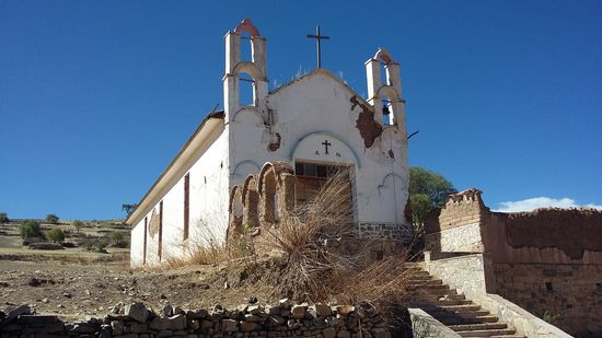 Vor dem Reisebüro werden wir abgeholt, von einem ´bolivianischen´ Geländewagen - also einem Auto, das für kleine Leute gebaut ist. Hinten hocken zwei zusammengekauerte Gestalten, das Bild ist göttlich! *grins*. Wir tauschen die Plätze, da wir deutlich kleiner als die beiden Franzosen sind. Doch was ist das!? Selbst ich, mit meinen 163 cm komme mit dem Kopf an die Decke und muss mich leicht bücken oder zur Seite neigen! Wer baut nur solche Autos?? Wir holen noch einen Engländer ab und fahren dann los. Wir fahren aus der Stadt raus, es wird immer ländlicher und wir fahren rauf. Am Santuario de Chataquila beginnt unser Ausflug. Ich frage Sandra, die uns als Guide begleitet, ob es eine Toilette gibt. Sie zeigt mir ein kleines Häuschen, warnt mich aber, dass die Toilette von keinem sauber gehalten wird und kein Wasser hat. Ich probiere es dennoch, denn die Blase drückt. Ich betrete einen sehr übel riechenden Raum mit einer Toilette, in einer Ecke stapeln sich die dahin geworfenen Toilettenpapierfetzen und Taschentücher. <<< Es ist vielleicht ein merkwürdiger Zeitpunkt dies zu erwähnen, doch das sollte auch mal gesagt werden. Hier in Südamerika wird das Toilettenpapier nicht in die Toilette geworfen, sondern in den dafür vorgesehenen Mülleimer, den es immer in irgendeiner Form gibt. Der Grund? Ganz einfach: damit die Abflussleitungen nicht verstopfen! Und, wem das neu ist und jetzt denkt, das muss doch stinken, den kann ich beruhigen: nein, es stinkt nicht und ist nicht so eklig wie man sich das vielleicht zuerst denkt.>>> Ich empfehle den vier männlichen Reiseteilnehmern, sich hinter dem Gebäude einen Baum zu suchen. Sie tun es nicht und kommen ebenfalls mit einem vor Ekel verzerrten Gesicht aus der Toilette raus... Männer, nie wollen sie auf eine Frau hören....