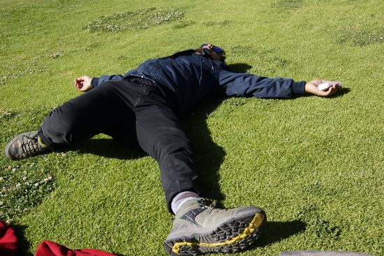 Um nicht allzu viele Höhenmeter zu machen und nicht allzu viel zu laufen und damit die Kräfte zu schonen, entscheiden wir uns für eine geführte Halbtagestour zu den Sehenswürdigkeiten in der Nähe der Stadt. Die Señora in der Reiseagentur empfehlt uns die Vormittagstour ohne Qorikancha, so dass mehr Zeit für die anderen Orte zur Verfügung steht. Wir buchen die Tour für kommenden Tag und besuchen erst einmal nur das Mueseum von Qorikancha, von dem aus man auf die große Wiese vor der Qorikancha darf. Hier macht nun Carlos schlapp, legt sich, in der Hand eine Packung Taschentücher haltend, auf die Wiese hin und will nichts mehr sehen oder hören.