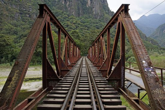 Unten an der Brücke angekommen, verabschieden wir uns von Denner und seiner Begleiterin, die noch eine Nacht in Aguas Calientes bleiben und gehen mit Anabel zurück nach Hidroeléctrica.