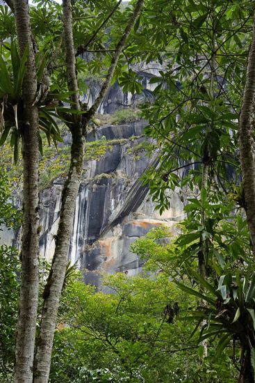 Hier ist der Serpentinenweg zu sehen, den die Busse hochfahren. Der Fussweg ist querfeldein. Links sieht man den Fluss, den wir morgens über die Brücke passierten.