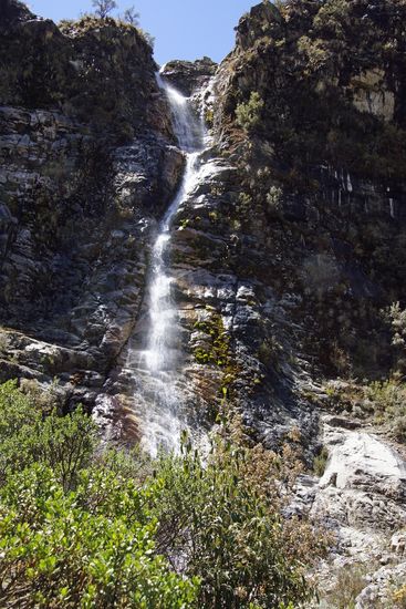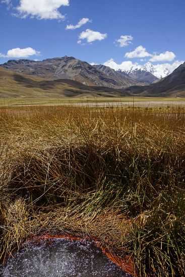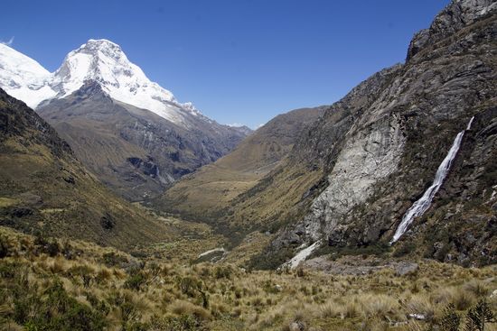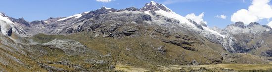 Unterwegs sind mehrere Nevados zu sehen, vor uns einer, hinter uns einer, seitlich einer... es ist phantastisch!!! Immer wieder sind kleinere Wasserfälle zu sehen, die die Bächer speisen.