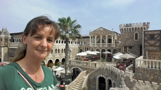 Heute kann man das Schloss besichtigen, es ist eine Touristenattraktion. Es gibt eine kostenlose Führung durch das Schloss, an der man teilnehmen kann. Sehr gut gemacht. Man kommt so in ein paar Räumlichkeiten, die sonst nicht frei zugänglich sind. In einem Raum gibt es Fotos vom Bau des Schlosses, im anderen ein Museum mit alten hübschen Keramiken, ein paar Mumien, ja richtig gelesen!, und ein paar ausgestopften Tieren, Tierfellen oder nur Tiernachbildungen. Sehr hübsch gemacht und sehenswert! Es gibt sogar zwei kleine Swimmingpools, es lohnt sich also, Badesachen mitzunehmen! (natürlich wußte ich von nix und hatte keine mit ) Draußen kann man sich frei bewegen und das für diese Gegend doch sehr ungewöhnliche Gebäude in Ruhe besichtigen. Es gibt hier auch ein kleines Gruselhaus, nichts für Angsthasen! Und wer Hunger oder Durst bekommt, kann sich etwas zu essen und leckeren Wein zu trinken bestellen.