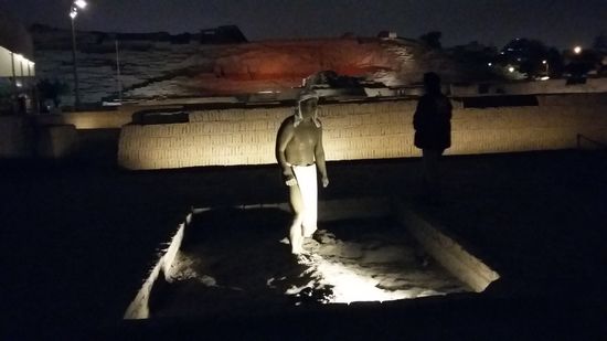 Ich bin froh, hier die Möglichkeit des nächtlichen Besuchs wahrgenommen zu haben. Die Beleuchtung schafft eine tolle Atmosphäre und die sonst einfarbigen Steine erscheinen nun auf andere Weise interessant. Es ist merkwürdig, hier die etwa 1500 Jahre alten Ruinen zu betrachten, während um einen herum moderne Häuser hochragen. An einer Stelle ist direkt hinter dem Zaun eine Straße, auf der anderen Seite Wohnhäuser. Was für eine Lage!