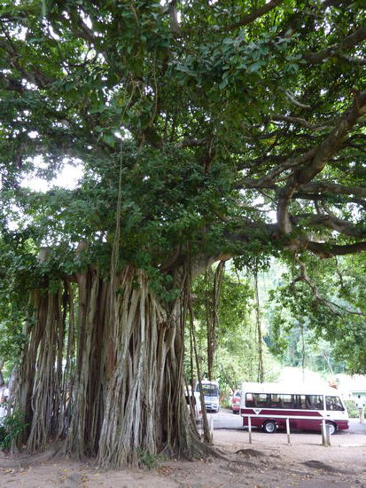 Vor 20 Jahren war ein Hurricane über Dominica gerast und hatte den Botanischen Park total platt gemacht, dabei hatte ein Baum einen Linienbus unter sich begraben, der noch heute unter dem Baum liegt.
