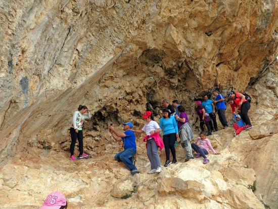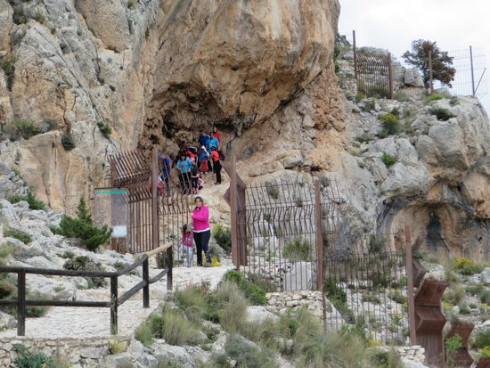 Pünktlich um 12 Uhr sind alle Teilnehmer für die Besichtigung der Cueva de los Letreror am Treffpunkt. Eine junge Frau verteilt Eintrittskarten (2 Euro/Person) und überreicht jedem Teilnehmer eine mehrseitige Info-Schrift über alle Höhlenfunde in Almeria. Allein in der Gegend von Los Velez befinden sich 35 solcher Höhlen. Die meisten der Höhlen sind nicht für Besucher zugänglich.
