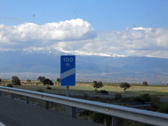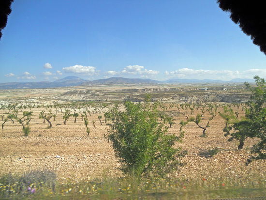 Gegen 11 Uhr sind wir in Cullar, bei herrlichem Wetter, 20 Grad. In der Ferne ist die Sierra de Nevada zu sehen. Die schneebedeckten Berggipfel leuchten in der Sonne.
