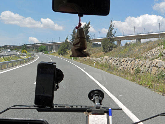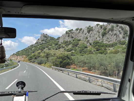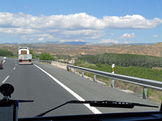 12.10 Uhr – Bild – Sierra de la Mora de Huetor. Um 12.15 Uhr passieren wir den Puerto de la Mora, 1.390 m. Der Verkehr nimmt zu. Wir nähern uns Granada.
