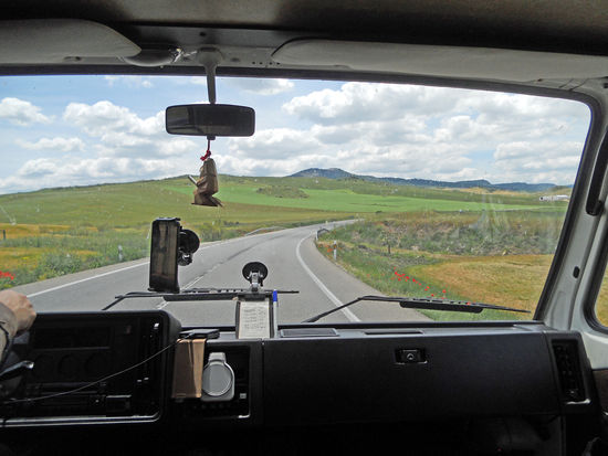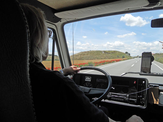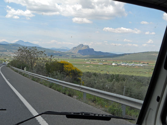 Um 13.30 Uhr sind wir in der Nähe von Antequera. Am Straßenrand ganze Flächen von roten Mohnblumen, gelbe Wildblumen, sieht herrlich aus.