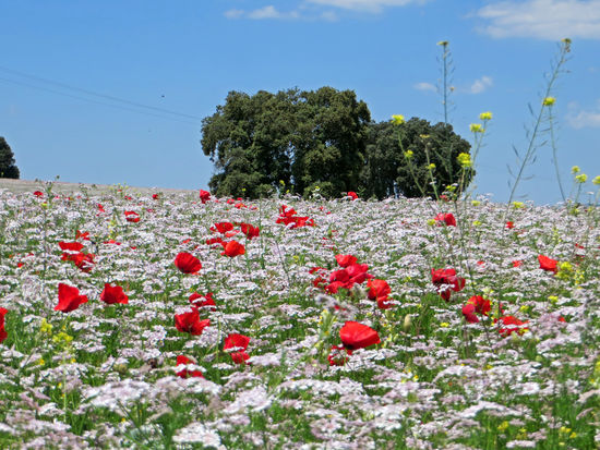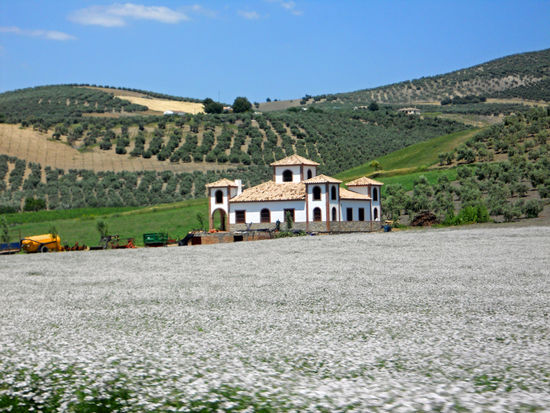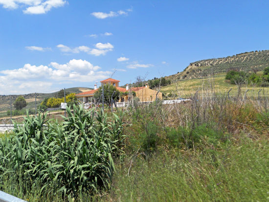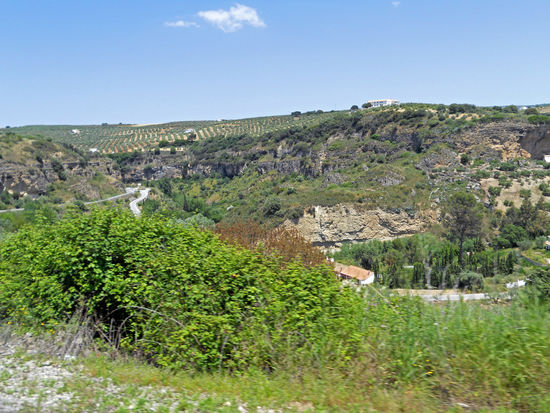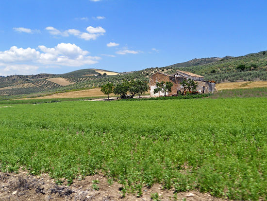 Der Rio Guadalcobacin sorgt hier für fruchtbares Land – Olivenbäume, Getreidefelder und Dehesas mit Steineichen.