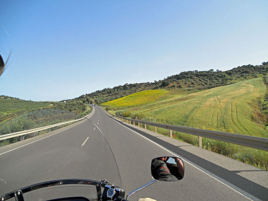 Route: A 384 Olvera bis Villamartin, A 373 Prado del Rey, El Bosque, bis Ubrique, A 373, durch den Parque Natural de Los Alcornocales. Dies ist eine traumhafte schöne Strecke, durch eine wilde unberührte Natur.