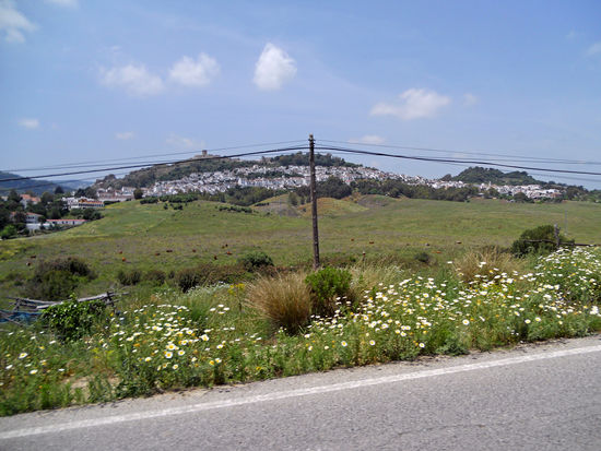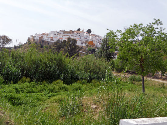 Wir halten und haben von einem Mirador aus einen guten Blick auf den Ort und die Ruinen der maurischen Burg. Leider haben hier einige Vandalen mal wieder die schöne Landschaft mit ihrem Müll verschandelt.