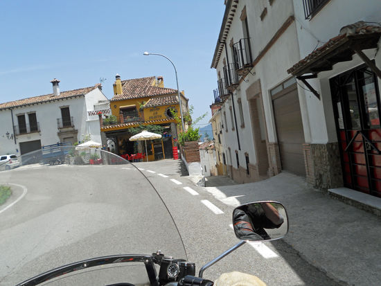 Gegen 12.50 Uhr erreichen wir Jimena de la Frontera. Wir machen hier Pause, aber der Weg hinein in den Ort ist mal wieder abenteuerlich. Doch Rolf kann nichts aus der Ruhe bringen und so gelangen wir zur Plaza de le Constitucion.