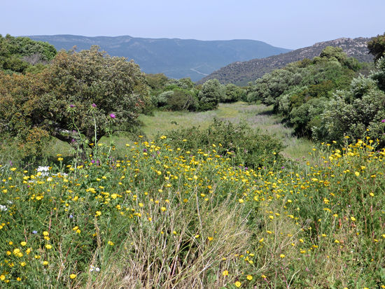 Es geht weiter - CA 8201 Richtung Jimena de la Frontera. Wir sind fast allein in dieser traumhaft schönen Gegend unterwegs. Auf den Weiden grasen prächtige Rinder und elegante Pferde. Ziegen und Schafe, schwarze Schweine und in der Luft Gänsegeier – einfach herrlich. In dieser Region finden sich keine Ställe für Massentierhaltung. Darüber sind wir sehr froh. Und ich bin begeistert, dass Rolf mal wieder so eine schöne Tour ausgesucht hat. Es begegnen uns Cowboys auf Pferden, die eine Rinderherde von einer Weide zur anderen treiben. Leider bin ich zu spät mit der Camera.
