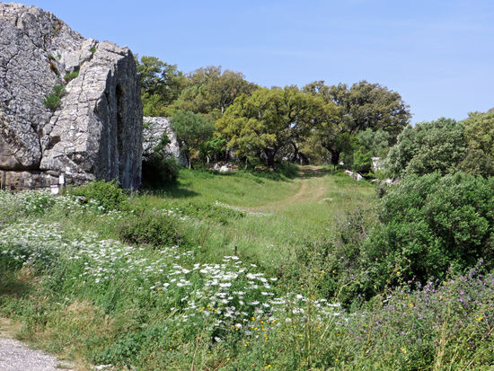 Die Zisternen im nördlichen Teil der Anlage stammen aus verschiedenen Epochen. Ganz im Norden liegt heute der Friedhof des Dorfes. Die Ruinen können besichtigt werden.
