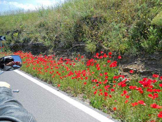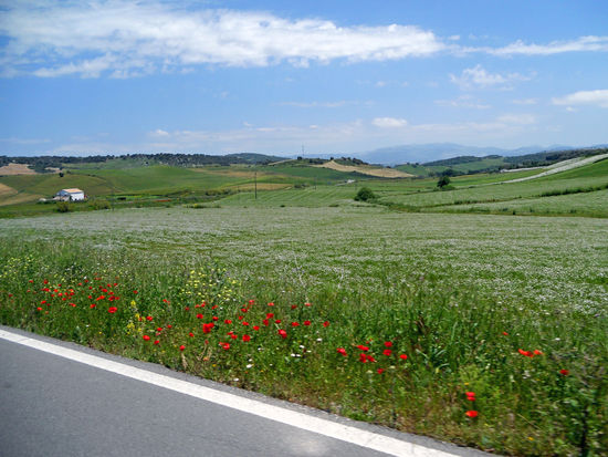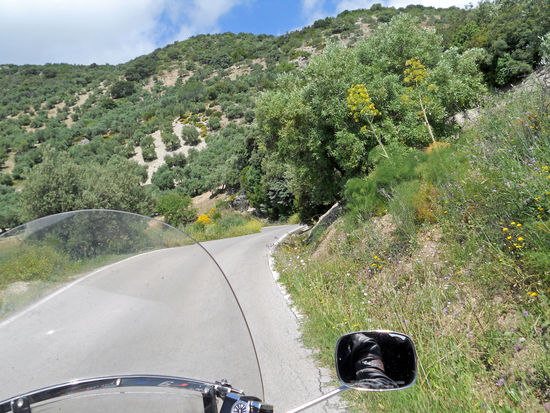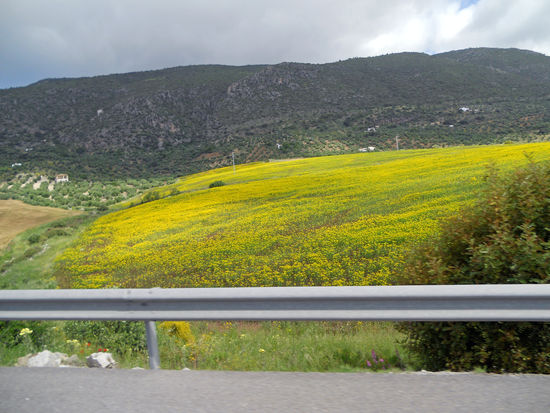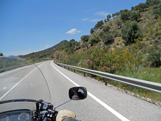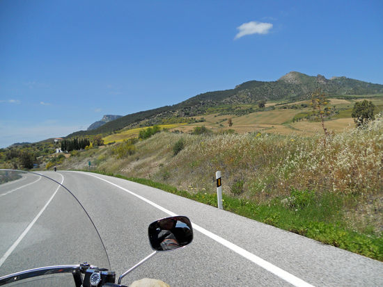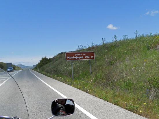 A 372, über den Puerto Montejaque, 702 m. Eine traumhaft schöne Landschaft ist das, überall Viecher, blühende Blumen, die man in Deutschland kaum noch sieht.