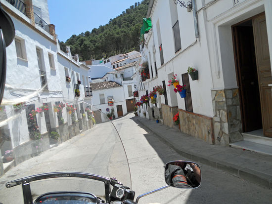 El Gastor. Wir durchfahren diesen Ort. Ich kann keine Bilder machen, da die Straße extrem eng und steil ist. Dann kommt uns auch noch ein LKW entgegen, ich kriege die Krise. Rolf muss ganz schön arbeiten, damit wir an dem LKW, der freundlicherweise angehalten hat, vorbei kommen. Ich bin fix und alle.