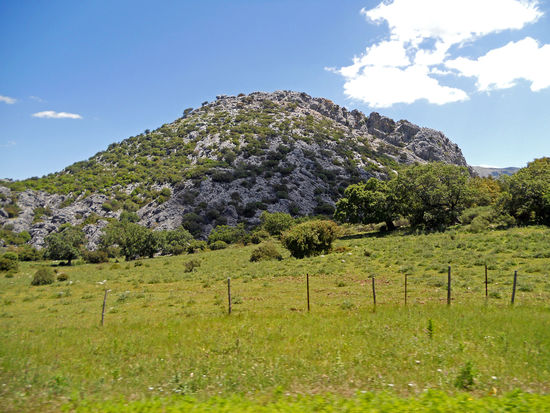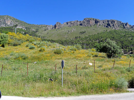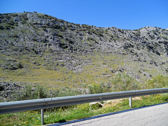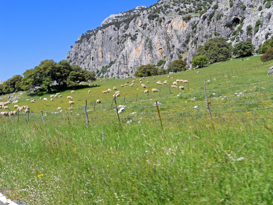 Die Fahrt durch die Sierra del Caillo ist phantastisch. Eine blühende Landschaft, Blumenwiesen, bizarre Felsformationen, Schaf- und Ziegenherden. Herrlich, ich bin mal wieder begeistert. An einem Mirador halten wir, um einige Bilder zu machen.