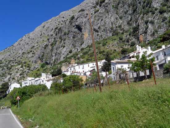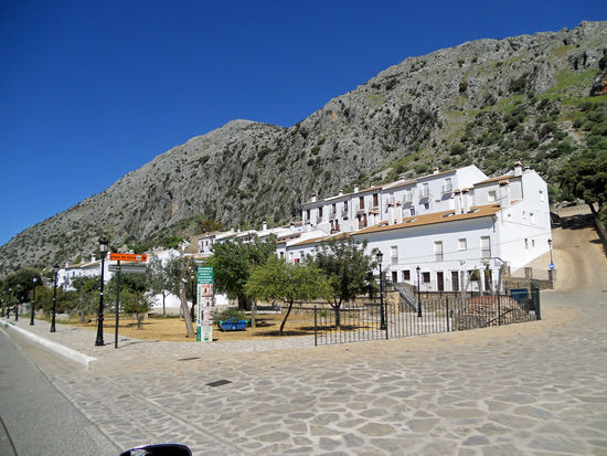 Wir passieren den Mini-Ort Villaluenga del Rosario, ca. 460 Einwohner. Er liegt in der Provinz Cadiz, Andalusien, auf 870 m Höhe, mitten im Naturpark Sierra de Grazalema. Es ist die am höchsten gelegene Ortschaft der Provinz Cadiz. Die Bewohner verehren die Muttergottes des Rosenkranzes und haben daher den Namen des Ortes dieser Verehrung angepasst. Sehenswert in dem Pueblo Blanco ist die Iglesia San Miguel, 16. Jh., mit barocker Taufkapelle. Leider geschlossen.