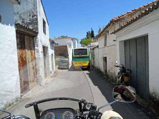 Wir verlassen Ubrique, entdecken mal wieder einen interessanten Kreisverkehr. Passieren Cortes de la Frontera. In der Nähe von Algatocin machen wir um 14 Uhr in einer kleinen Bar Pause. 1 Alkoholfreies Bier, 1 Wein, 2 Tapas 4 Euro. Ich bin immer wieder erstaunt.