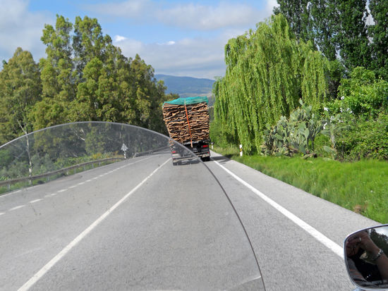 Gegen 14.30 Uhr fahren wir weiter. Auf allen Straßen heute herrscht viel Verkehr, vor allem rasende spanische Motorradfahrer sind unterwegs.