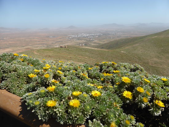 Auf der Weiterfahrt nach Betancuria machen wir einen Abstecher zum Mirador Morro Velosa, wo uns direkt drei Busladungen in die Quere kommen. Nach einem Kaffee stellen wir dann jedoch fest, das sich um Trendtours-Gruppen handelt. Sie waren offensichtlich vorher in Betancuria, so dass wir dort mehr Ruhe erwarten können.