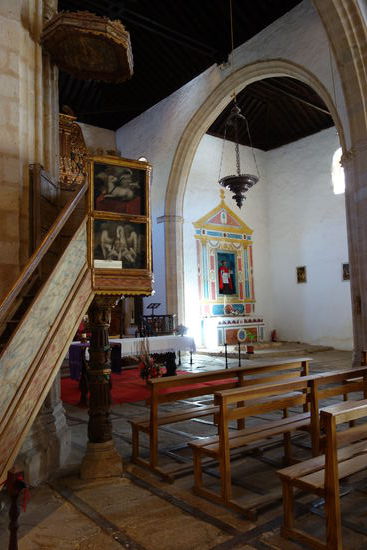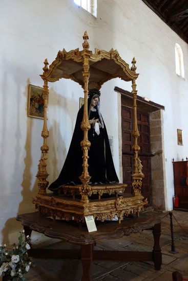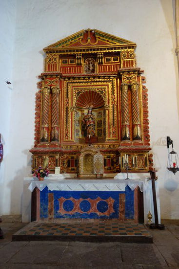 Dies ist auch so, auch wenn wir etwas enttäuscht sind von dem Ort, da er touristisch wirklich schon überlaufen ist und überall Souvenirshops und Restaurants für sich werben. Ulrike liest an der Kirche ein Schild, dass es sich um ein Museum für kirchliche Kunst handelt und meint, dass wir dort Eintritt zahlen müssen. Nach einem kleinen Rundgang durch den Ort ist dieses Schild verschwunden und man kann ohne weiteres in die Kirche eintreten. Es wurde offensichtlich nach dem Busandrang beiseite gestellt.