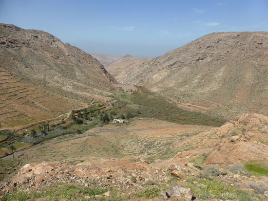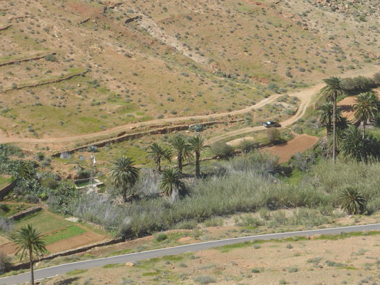 In dem schroffen Bergland überrascht ein weites Palmental, das von einer großen Streusiedlung namens Vega de Rio Palmas beherrscht wird. Sie gehört zum Gemeindebezirk von Betancuria. Der idyllische Ort liegt in einem fruchtbaren Barranco, in dem zahlreiche Kanarische Dattelpalmen (Phoenix canariensis) und Tamarisken wachsen.