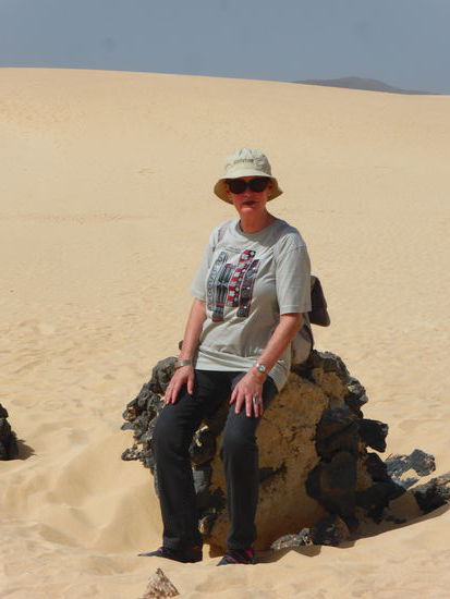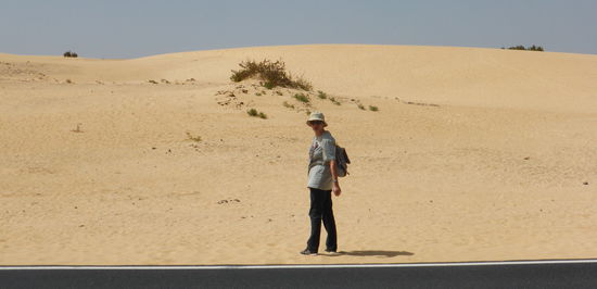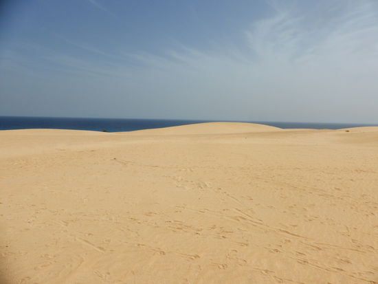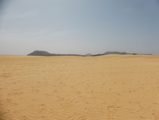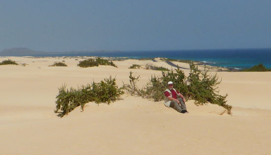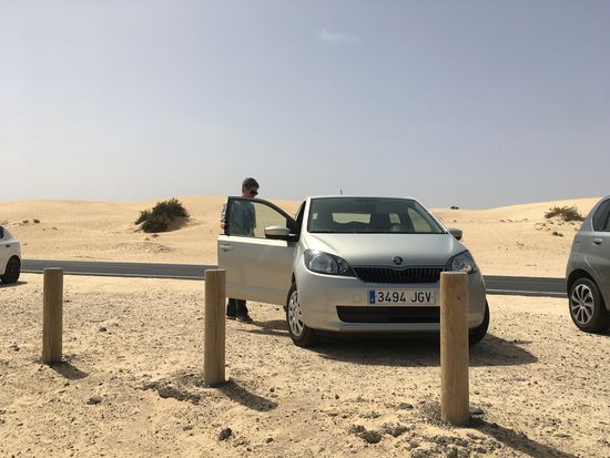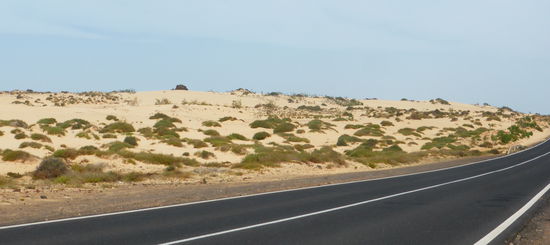 Auf der Fahrt hierher haben wir bereits das ausgedehnte Dünengebiet (El Jable) gesehen, in dem möchte gerne gerne etwas umherlaufen. Daher fahren wir nochmals zurück und parken den Wagen an der Durchgangsstraße, die ab und zu mit Schneepflügen freigemacht werden muß, wenn mal wieder der Saharasand sie überzogen und unpassierbar gemacht hat.