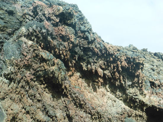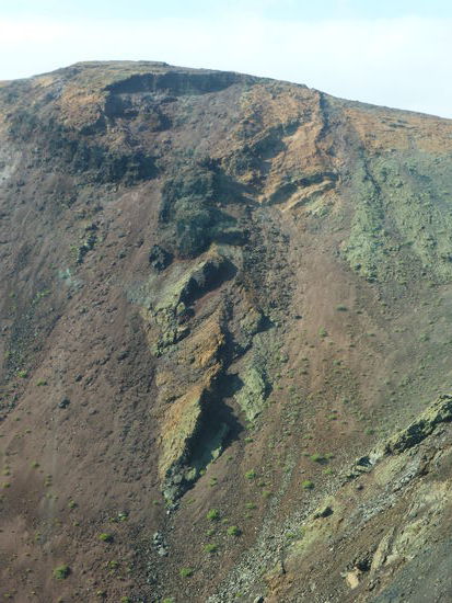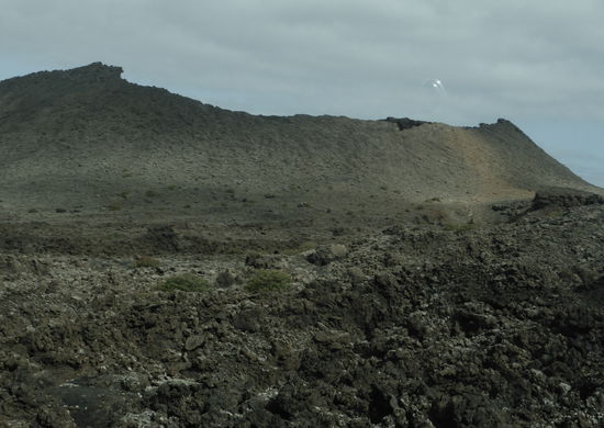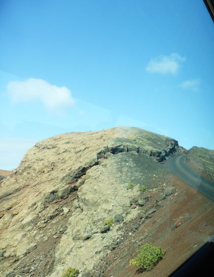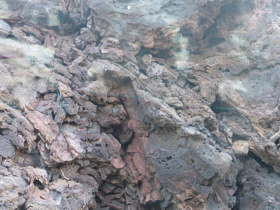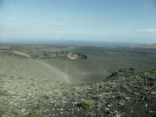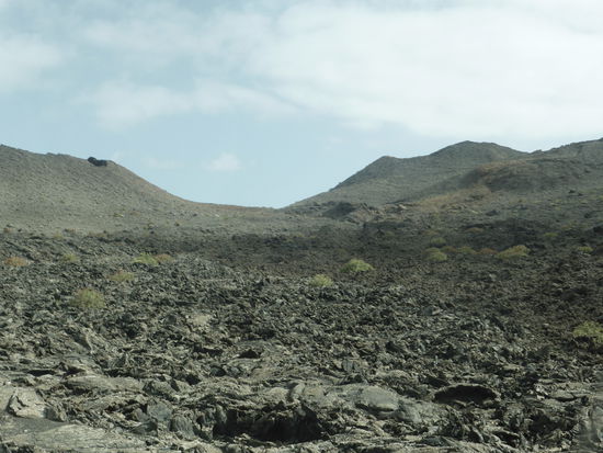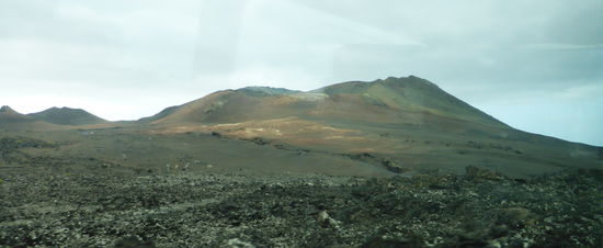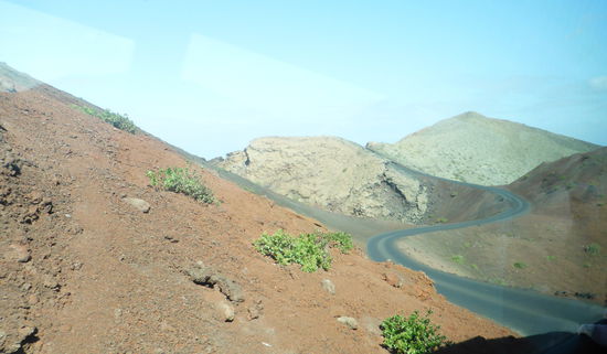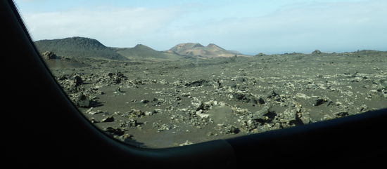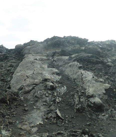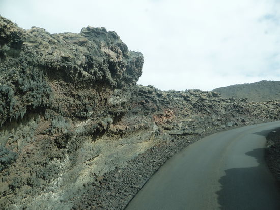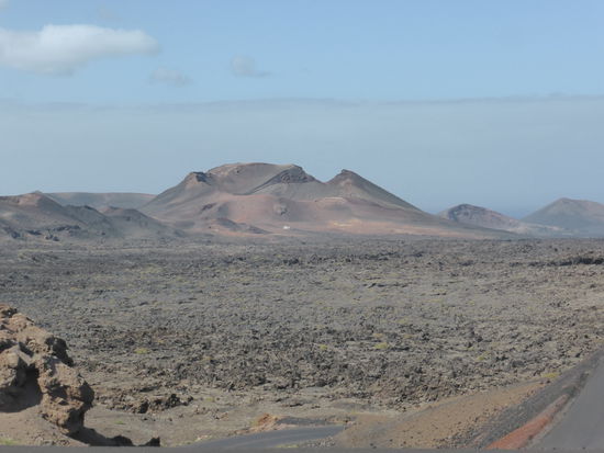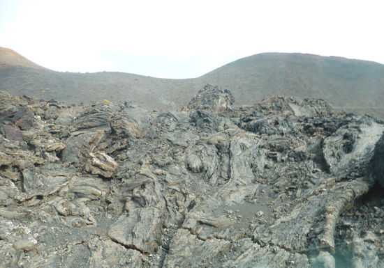 Etwa 45 min karrt uns der Busfahrer über recht enge und gewundene Sträßchen durch die Lavafelde, hält an interessanten Punkten an, damit man – allerdings nur aus dem Bus heraus – fotografieren kann. Nach der Rückkehr kann man von oben den regen Busverkehr beobachten.