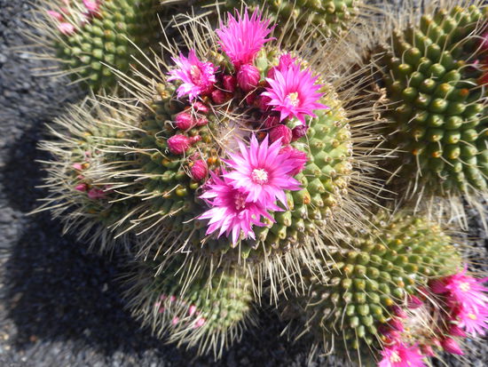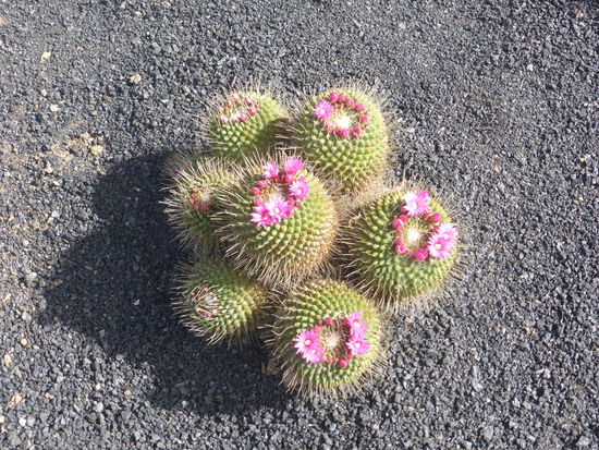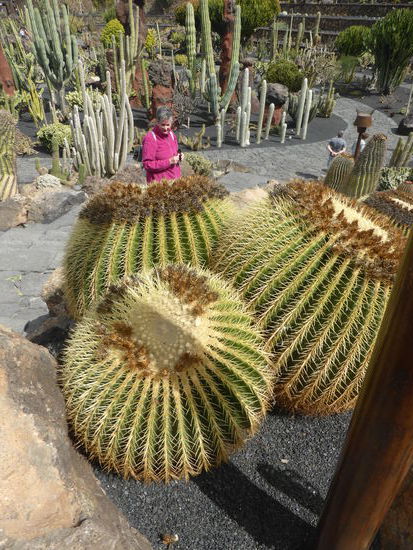 Auf unserer Runde ist uns an den Jameos del Aqua zu viel los. Da wir bereits auf Fuerteventura in einer Meereshöhle waren, fahren wir direkt weiter zum Jardin de Cactus, wo Ulrike in Jubel ausbricht. Auch hier ist viel los, aber wir können uns ja nicht immer vom Tourismus abschrecken lassen, denn schließlich sind wir selbst Touristen.