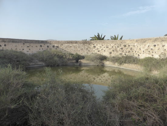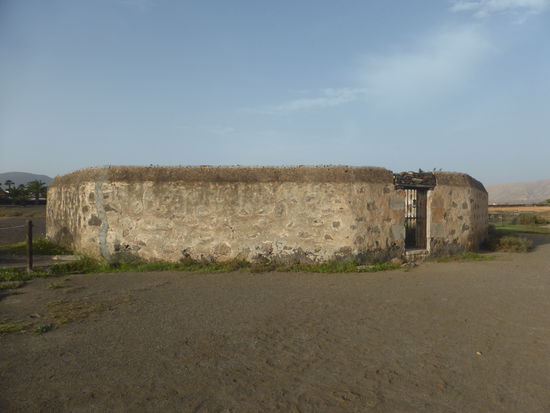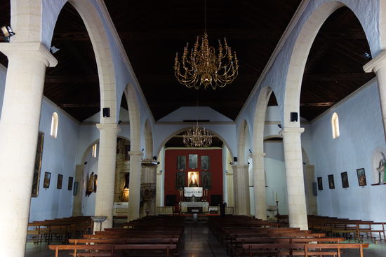 Nächste Etappenziel ist La Oliva – um diese Zeit ein verschlafener Ort, in dem allerdings mehrere interessante Dinge zu sehen sind. Wir beginnen mit der Kirche, die man tatsächlich auch betreten kann. Ein schlichter dreischiffiger Bau mit zwei romanischen Säulenreihen.