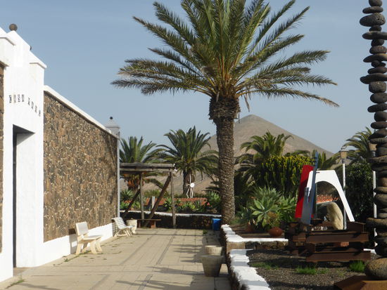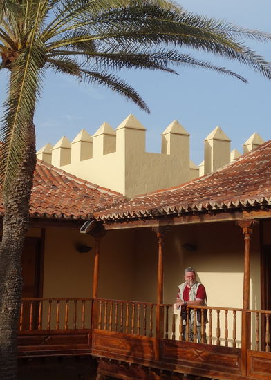 Ulrike hatte schon bei der Anfahrt das Casa de los Coroneles gesehen, zu der wir dann laufen wollen. Auf dem Weg dorthin finden wir auch das Herrenhaus mit dem hübschen Garten,da das Centro de Arte Canario beherbergt. Das auf eine Privatinitiative zurückgehende, 1991 gegründete Kunstzentrum zeigt Plastiken und Gemälde von zeitgenössischen kanarischen Künstlern. Zur Sammlung gehören Arbeiten des auf Gran Canaria lebenden Surrealisten Alberto Manrique (geb. 1926) sowie von César Manrique (1919- 1992; beide Künstler sind nicht miteinander verwandt).