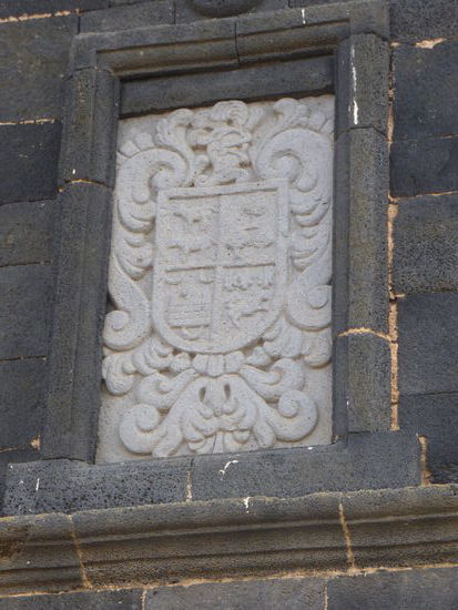 Über dem Portal prunkt das Wappen der Familie Cabrera Bethencourt, die den Bau in Auftrag gab.