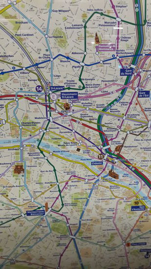 Der Bahnhof Paris Est hat einen direkten Zugang zur Pariser Metro. Vor den Fahrkartenautomaten bilden sich lange Schlangen, wir warten etwas ab, bis sich der Andrang gelegt hat. Eine Metrokarte kostet 1,90 Euro.