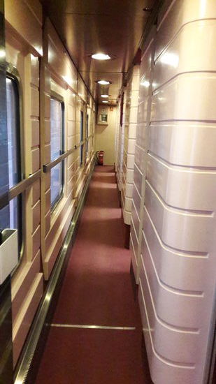 Der Zug fährt pünktlich ab. Die fünf Komfortabteile sind alle besetzt. Im nächsten Wagen gibt es die einfacheren Zwei-Bett-Abteile ohne Bad, nur mit Waschbecken, hier sind nach Abteile frei. Es gibt auch noch einen Wagen mit Sitzen, und wohl auch 4-Bett Abteile.