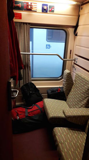 Der Zug gleitet nicht wirklich durch die Nacht, er schaukelt eher, und er hält häufiger an. Ein Blick aus dem Fenster zeigt dann grell erleuchtete, menschenleere Bahnsteige. Es ist also, wie zu erwarten, eine eher unruhige Nacht. Dafür ist die heiße Dusche morgens wirklich herrlich und den Mehrpreis wert.