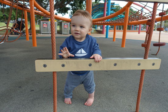 NAch Townsville führte uns die Route von Airlie Beach, weil wir für ein paar Nächte auf die nur 8 km vom Festland entfernte Insel Magnetic Island fahren wollten. Von Townsville starten die Fähren dorthin. Wir planten dort zwei Nächte ein, damit wir wieder einen autofreien Tag hatten und uns Townsville ein bisschen anschauen konnten. Unser Campingplatz lag einigermaßen zentral. Auf jeden Fall hatten wir gegenüber der Straße den Strand mit einem asphaltierten langen Promenadenweg, an dem auch einige Spielplätze waren, die Emil unbedingt genauer sehen musste. Leider fingen wir uns ( Emil blieb tatsächlich verschont) dabei zig Bisse von lästigen Sandfliegen ein, die sich penetrant auf die Haut setzten und bissen.