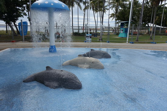 Ein öffentlicher Wasserspielplatz, das ist das Highlight von Townsville, zumindest für uns. Viel hat die Stadt ansonsten nicht zu bieten.