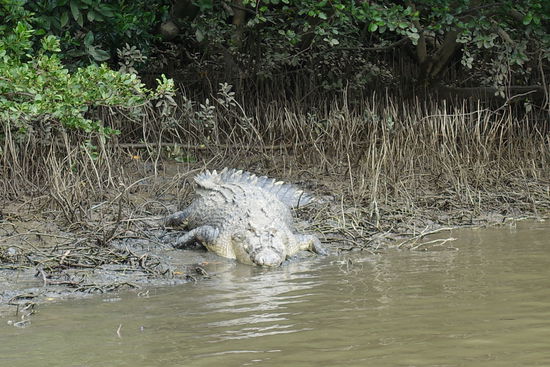Das ist wohl der Big Boss der Gegend. Bei fünf Meter Länge, bringt er es auf 700 kg und noch nicht voll ausgewachsen...
