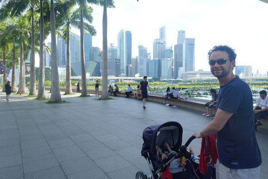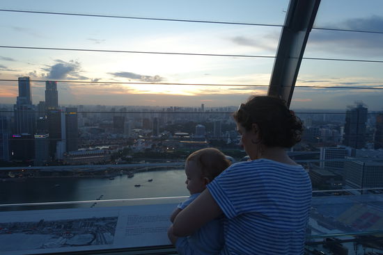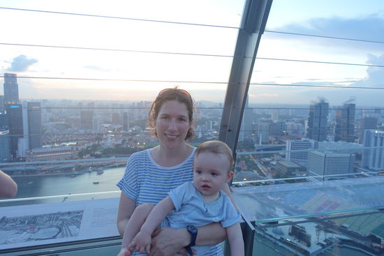 In Brisbane hatten wir ca. vier Stunden Aufenthalt, bevor es auf den 8 stündigen Flug nach Singapur ging. Allerdings wurde es uns nicht so lang, da wir mit dem Bus vom Inlands-Terminal einem zum internationalen Terminal fahren mussten, erneut durch die Passkontrolle und Taschenkontrolle. Der 8 stündige Flug tagsüber war dann doch etwas anstrengend und zog sich. Natürlich hat Emil zwischendurch auch mal geschlafen, aber den Rest der Zeit musste er ja irgendwie unterhalten bzw. beschäftigt werden. Gut, dass er so kontaktfreudig zu den hinter uns sitzenden Passagieren war, die mit ihm ständig Späße machten.