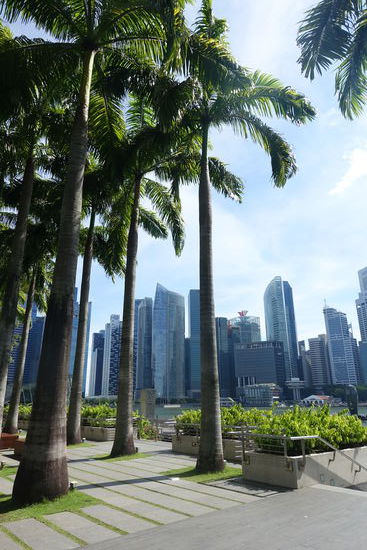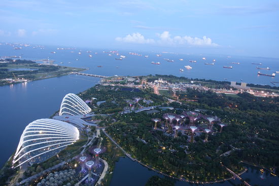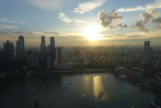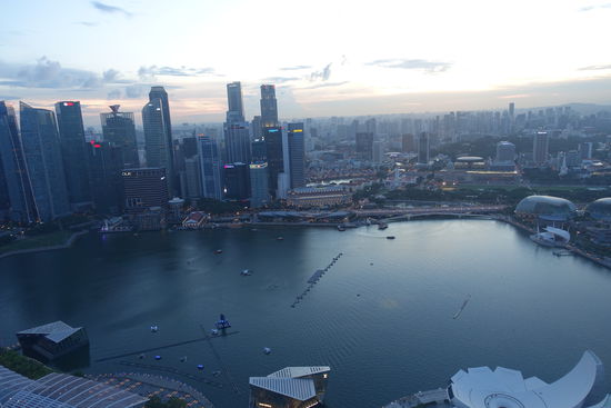 Das Marina Bay Sands Hotel mit Infinity Pool auf dem Dach. Abends waren wir auf dem Skydeck Observation Deck. Zum Pool haben nur Hotelgäste Zugang.